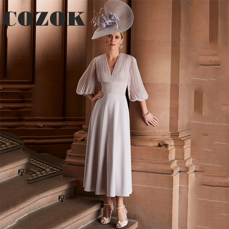 Elegant A Line Chiffon Mother Of Bride Dresses Puff Sleeves V Neck Pleat Formal Party Gowns Custom Vestidos De Fiesta BW25
