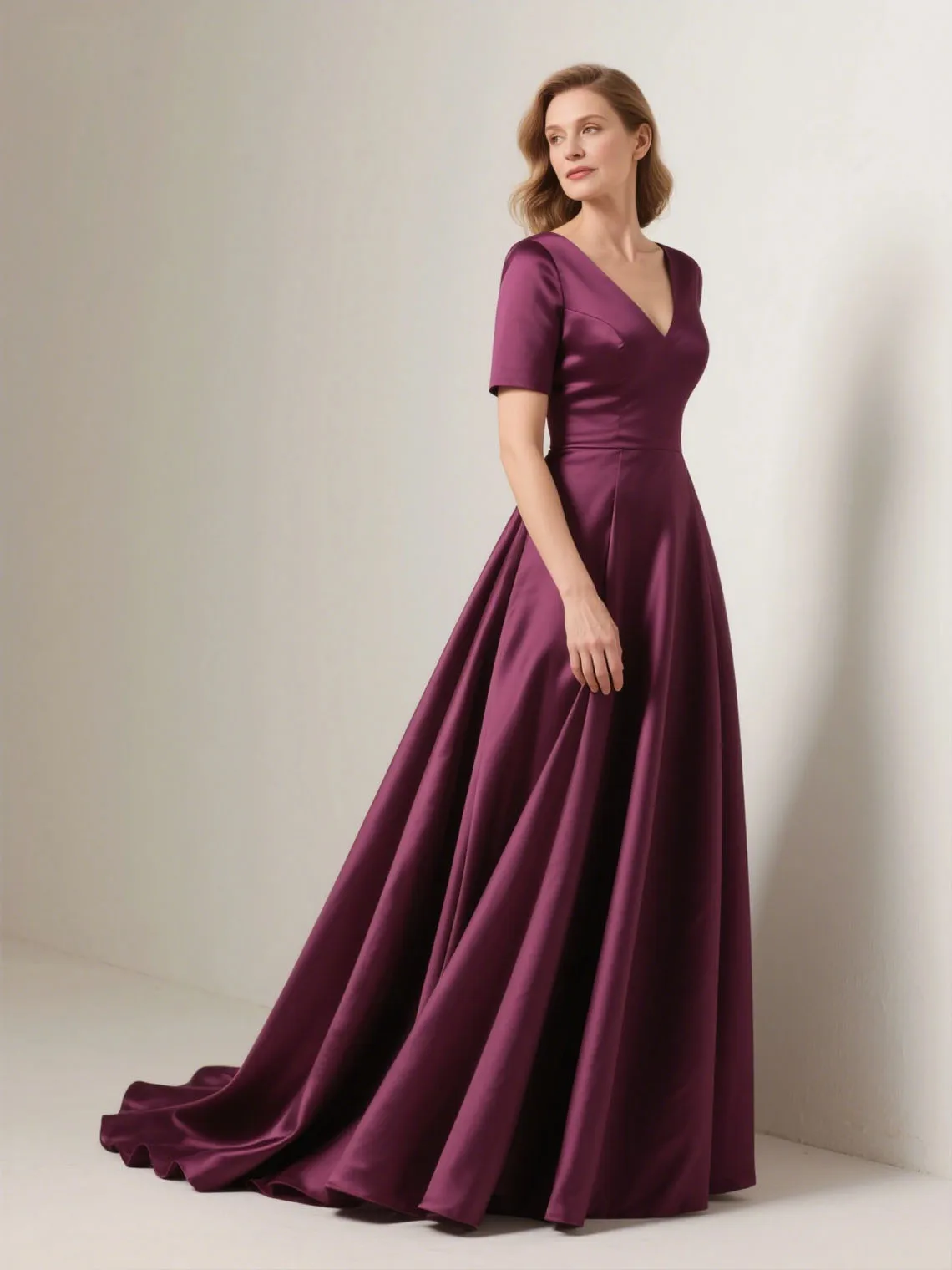 Elegant A-Line V Neck Satin Mother of the Bride Dress Floor Length Backless Wedding Party Evening Gown 2025 Free Customized