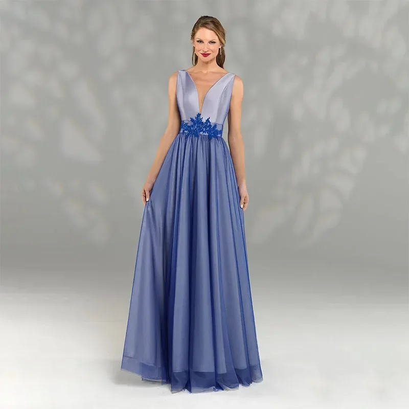 Elegant A-line V-Neck Sleeveless Mother Of The Bride Dress Applique Floor-length Wedding Guest Dress