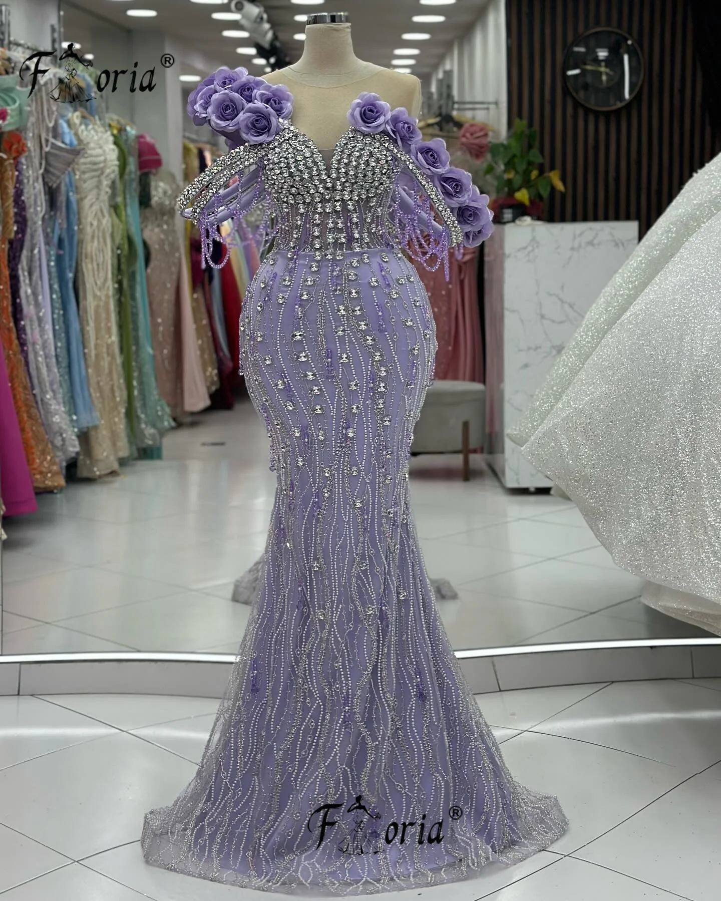 Item: Elegant Beaded Lace Appliques Mermaid Formal Evening Dreses Crystal Flower Customized Prom Dress Long Party Gown Robe Soiree