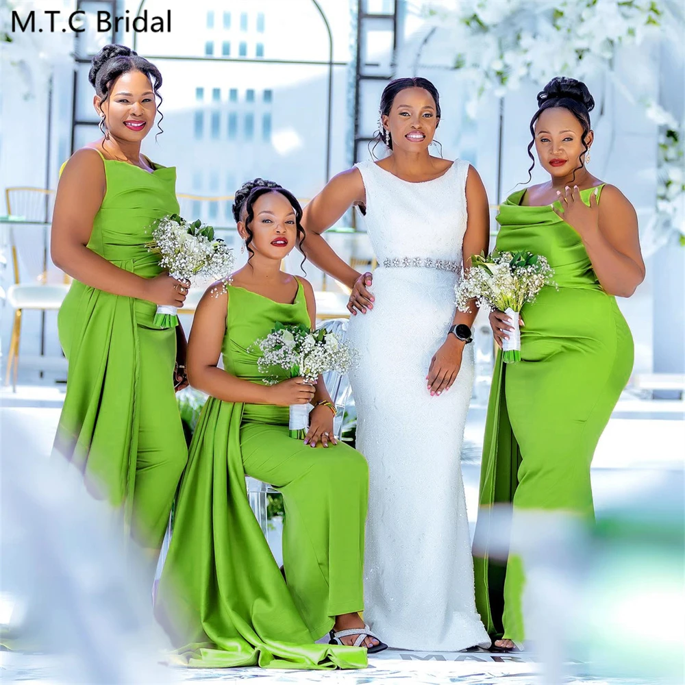 Elegant Green Mermaid Birdesmaid Dresses For Black Women Spaghetti Straps Corset Back Satin Wedding Guest Gowns Custom Made