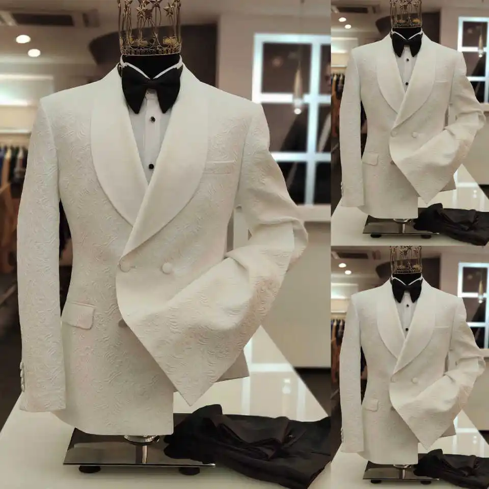 Elegant Jacquard Wedding Tuxedos 2 Piece Set Jacket Pants Men Suit Classic Fit Shawl Lapel Party Male Wear Suits Customized