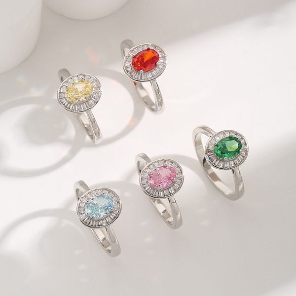 Elegant Multi-Colored Gemstone Oval Rings in Silver for Women – High-Quality Diamond Accent Jewelry, Perfect for Engagement or Fashion Wear