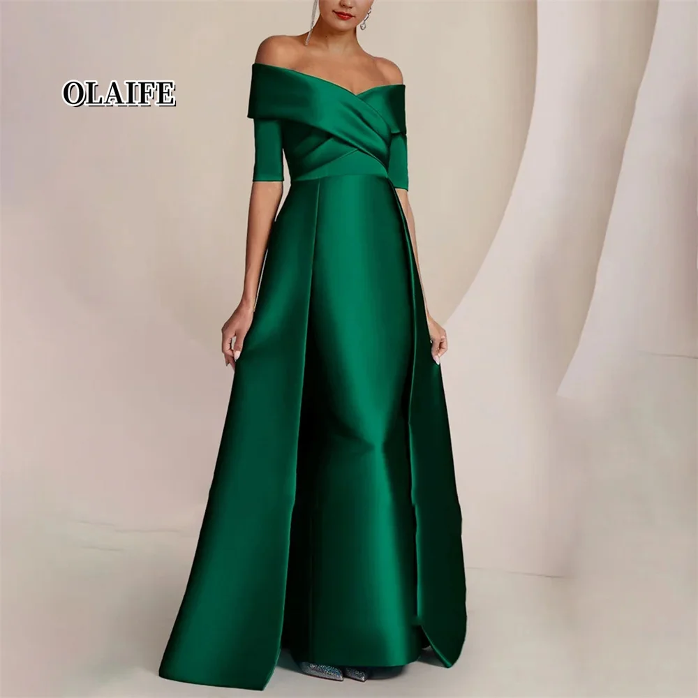 Elegant Off Shoulder Mother Of The Bride Dress Floor Length Half Sleeves Satin Formal Dresses Vestidos Mae Da Noiva Casamentos