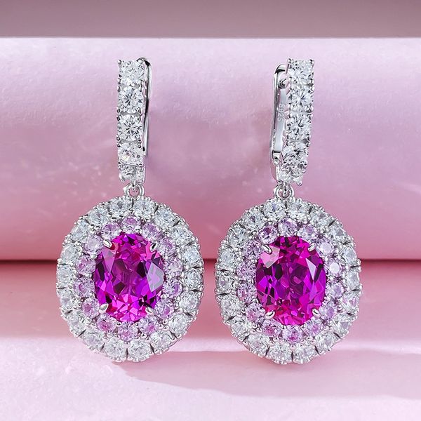Elegant S925 Silver Pink Sapphire Earrings – Oval Gemstone Drop Earrings for Women | Stylish Fashion Jewelry Wholesale