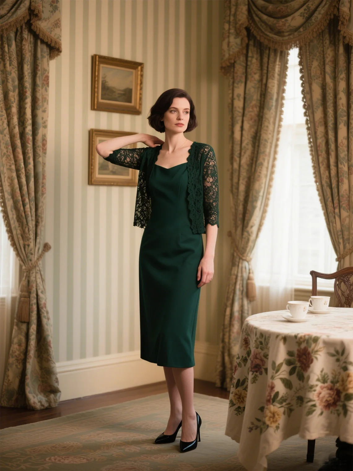 Elegant Two Piece Mother of the Bride Dress Casual Evening Gown Tea Length V Neck Half Sleeves Chiffon Lace 2025 free customized