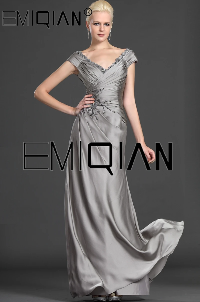 Elegant V Neck Beaded Long Mother Of The Bride Dresses Custom Made Cap Sleeve Mother Evening Gowns
