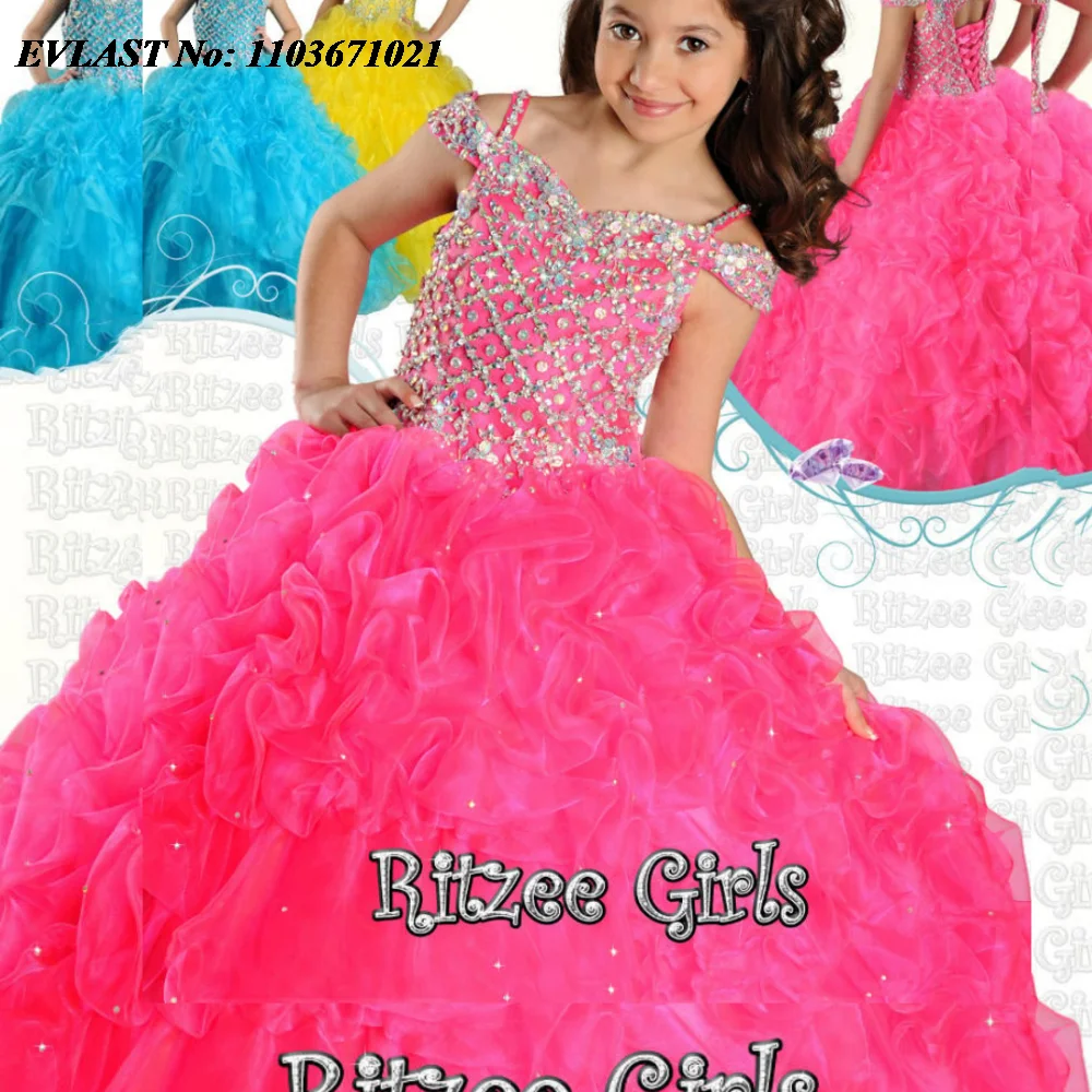 EVLAST Customized Pink Ruffles Flower Girl Dress Wedding Shiny Crystal Beaded Little Girls Pageant First Communion Gowns FD25