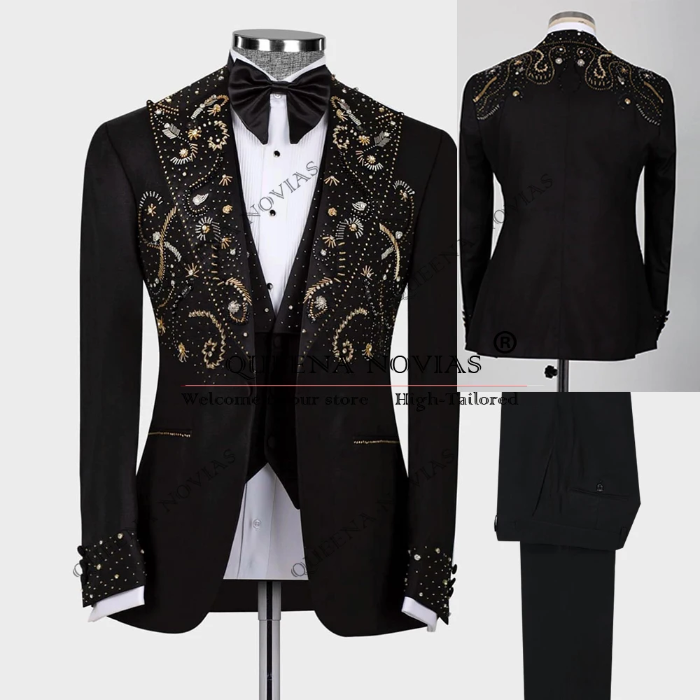 Exclusive Groom Wedding Suits Crystals Beading Man Dresses Customized Single Breasted Groom Tuxedo Customized Bridegroom Blazers