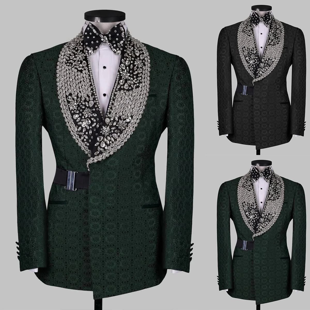 Exquisite Wedding Man Suits Slim Rhinestone Diamond Business Lapel Blazer Formal Occasions Suits for Men Party Customized