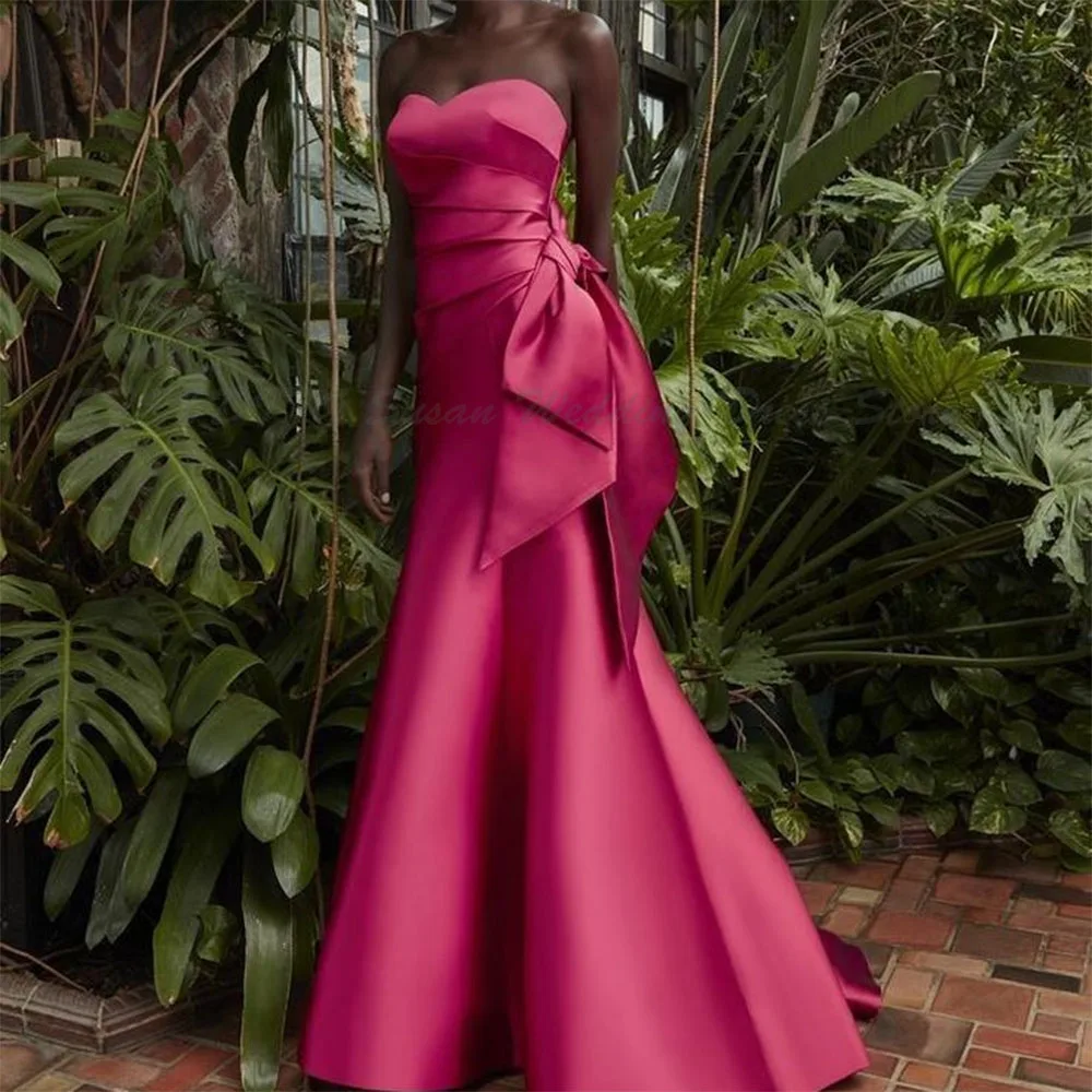 Exquisite Women Formal Evening Party Dresses Strapless Floor Length Sleeveless A Line Simple High Quality Luxury A-Line Gowns