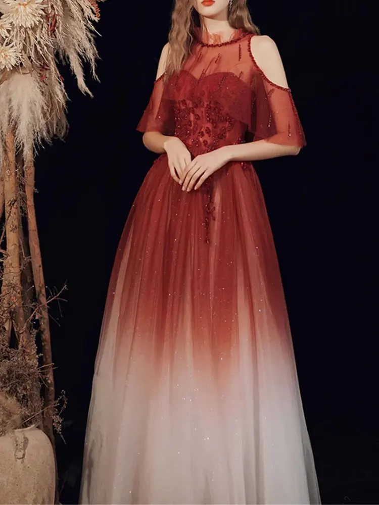 Fairy Tube Top Beading Toast Clothing Vestidos De Fiesta Women Burgundy Long A Line Tulle Prom Dresses
