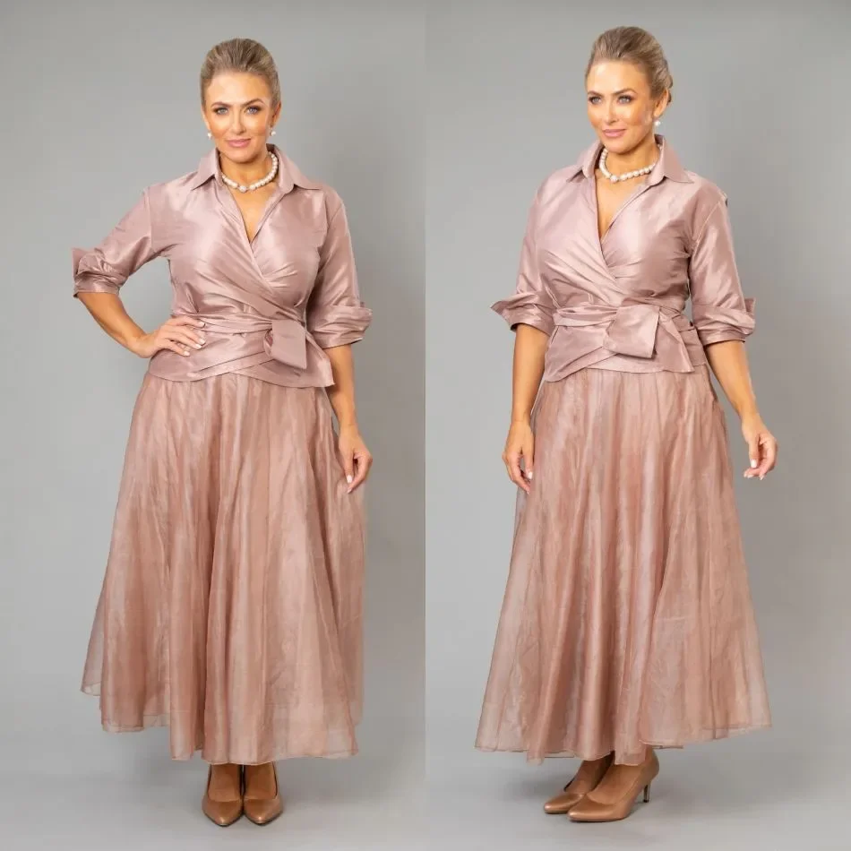 Fashion Made Tea-Length Plus Size V Neck Long Sleeves Mother of the Bride Dresses For Weddings فساتين السهرة Summer Customized