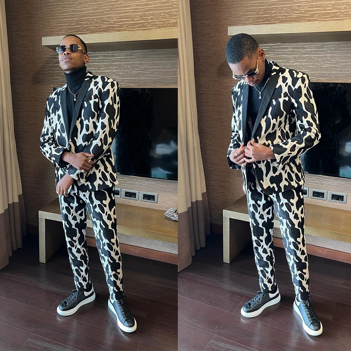 Fashion Men Suits Tailor-Made Wedding Suits Cow Grain Tuxedo 2-Pieces Jacket Pants Blazer Party Singer Groom Customized Hot Sale