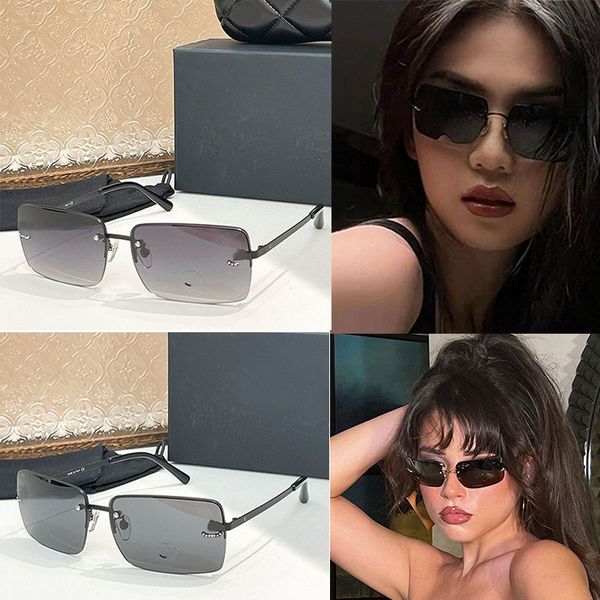 Fashion Square Metal Sunglasses Luxury Women Light Gray Frameless Lens 4104 Crystal Glass Pattern Decoration Party Beach Exquisite Glasses With Box