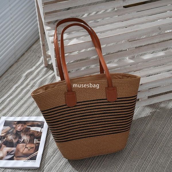 Fashion Women's Handbag Retro Shoulder Bag Designer Women's Grass Woven Bag Single Shoulder Woven Bag Large Capacity Women's Beach Bag