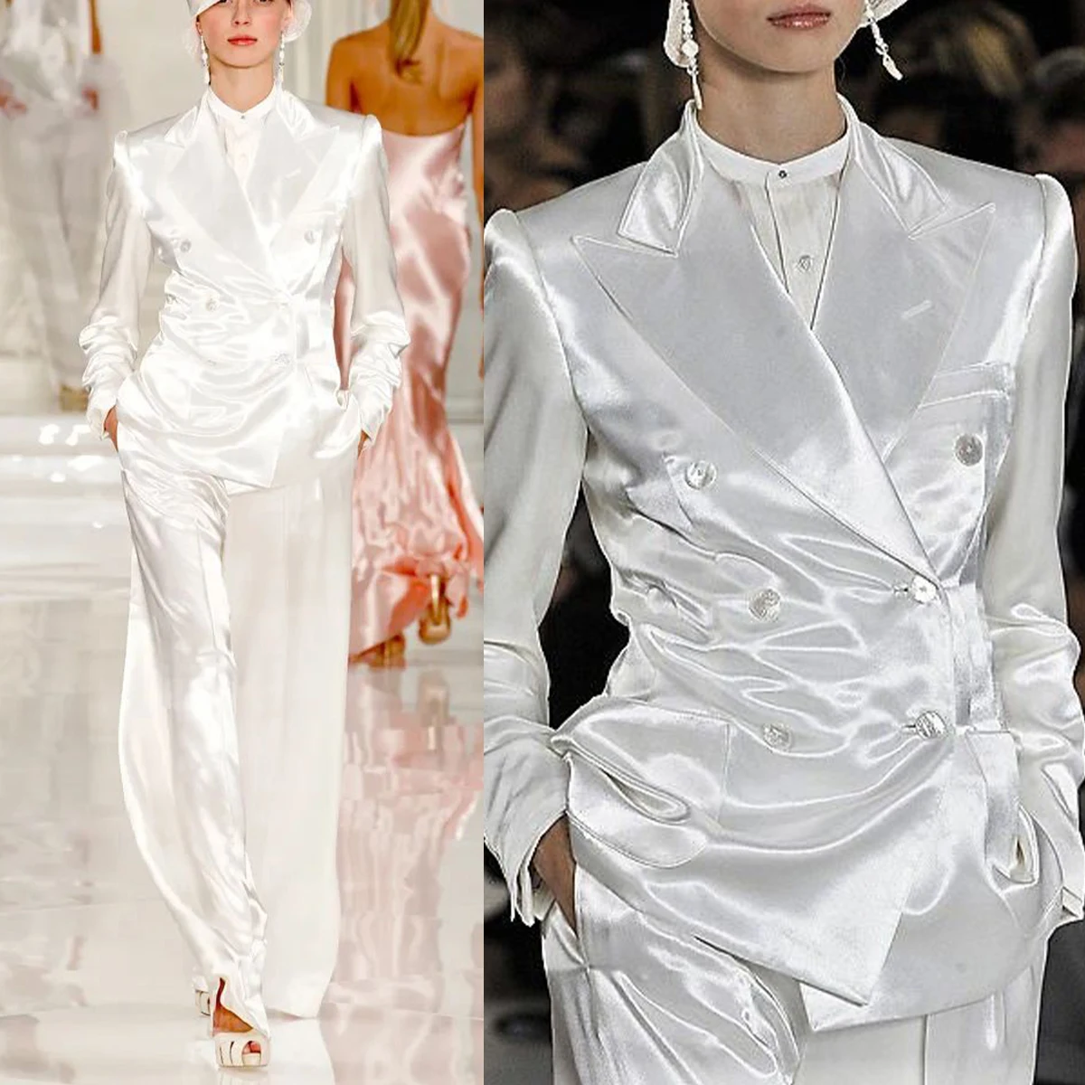 Fashionable Satin Women Pants Suits 2 Pcs Double Breasted Blazer Customized Wedding Guest Suits Formal Wear Evening Party Outfit