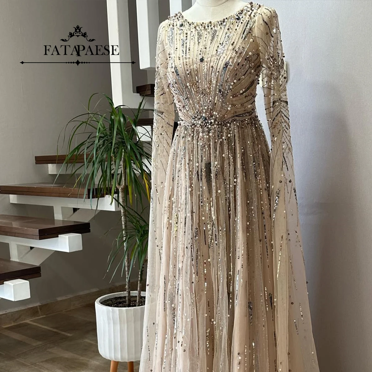 FATAPAESE Customized Evening Gown Cape Tank Sleeve Fully Crystal Beaded Luxury Saudi A-line Dresses Gowns For Formal Occasion