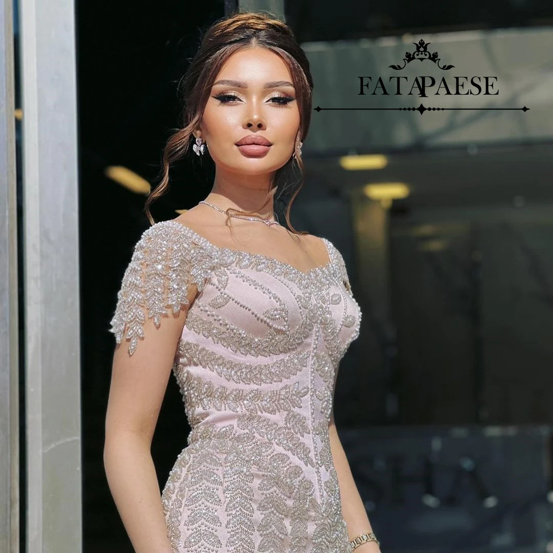 FATAPAESE Customized Luxury Bridesmaid Dress Full Beaded Sequins Stones Bodice Short Sleeve Sheath Gown Wedding Engagement Dress