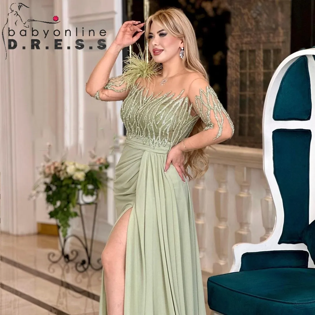 FATAPAESE Customized Mother of Bride Dress Sparking Crystals Stones Glitter Fabric Illusion-neck Side-Split A-line Satin Gown