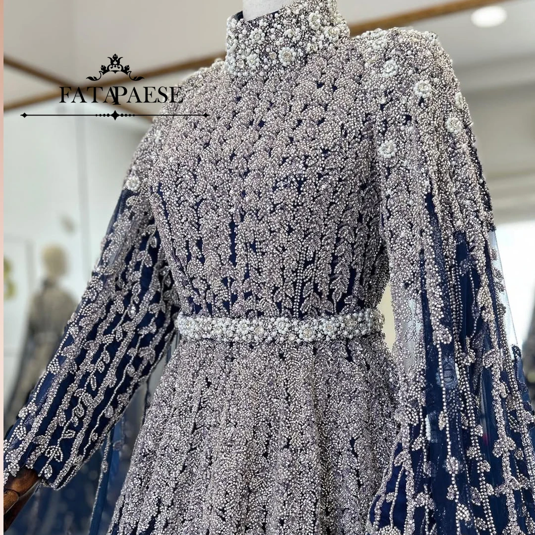 FATAPAESE Customized Saudi Evening Dresses High-neck Cover Cape Sleeve Fully Crystal Beaded Luxury Gowns For Formal Occasion