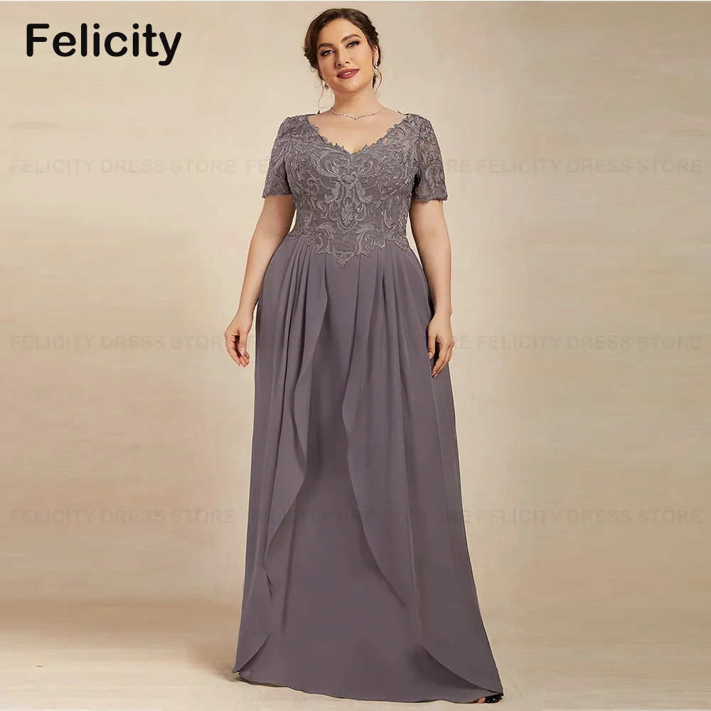 FELICITY Plus Size Elegant Mother of the Bride Dresses 2025 Customized A-line V-Neck Floor-Length Chiffon Wedding Guest Dresses