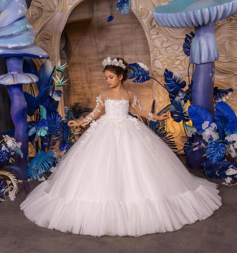 Flower girl dress, Tulle Lace flower girl dress Ivory First communion dress, Junior bridesmaid dress princess dress