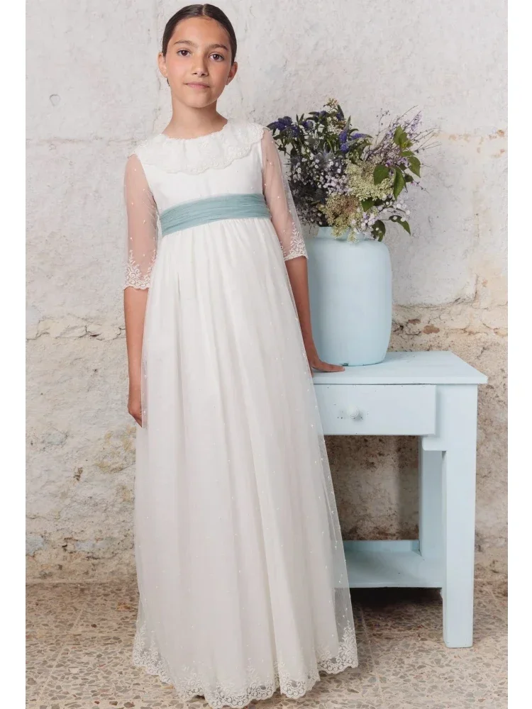 Item: Flower Girl Dresses White Lace Appliques With Bow Ribbon Half Sleeves For Wedding Birthday Party Banquet Princess Gowns