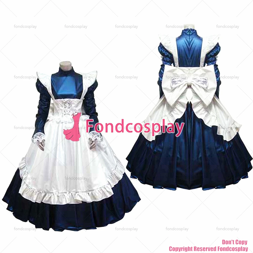 Item: fondcosplay adult sexy cross dressing sissy maid long lockable Navy thin PVC Dress vinyl white apron Uniform CD/TV[G1637]