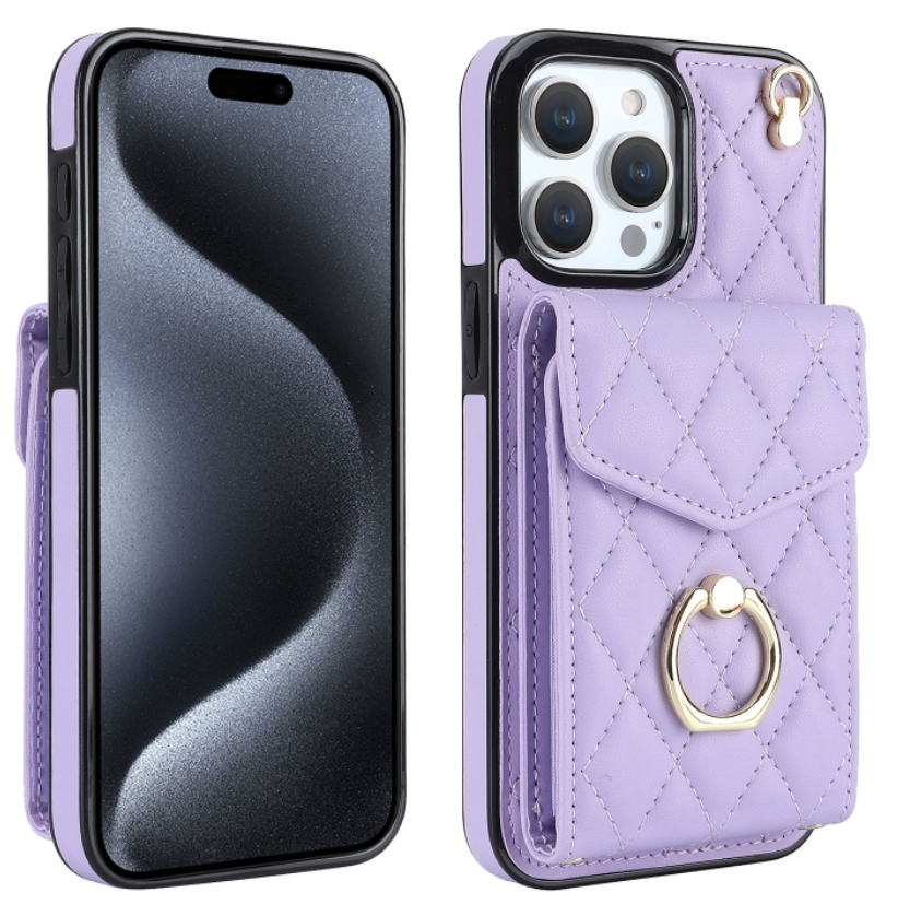 For iPhone 15 Pro Max Crossbody Small Fragrance Organizer Card Case (Light Purple)