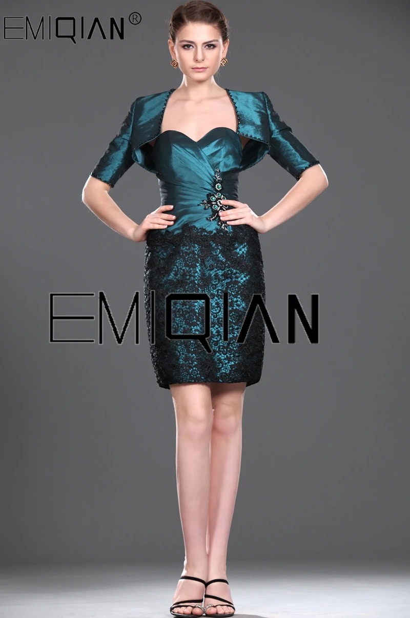 Formal Sweetheart Sheath Wedding Party Gown with Jacket Lace & Taffeta Short Mother of the Bride Dresses