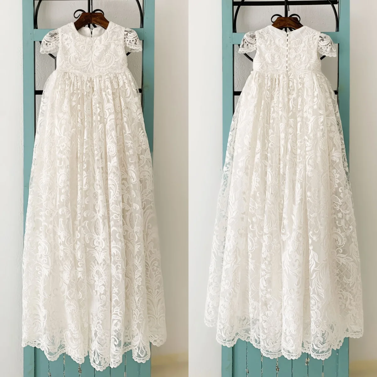 Full Lace Baby Christening Gowns Appliques Girls Baptism Customized Long Newborn Kids Birthday First Communion Dresses