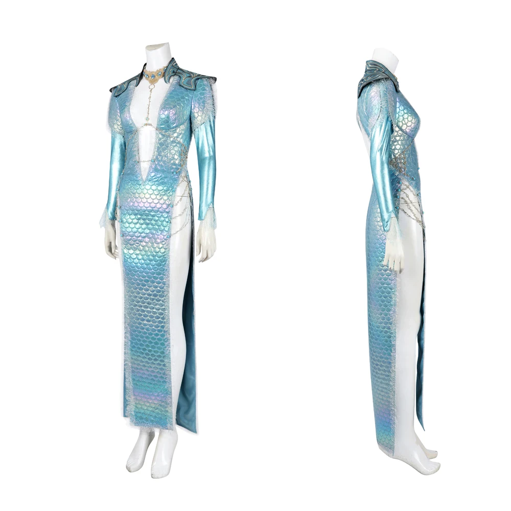 Item: Game BG3 Wavemother’s Robe Shadowheart Cosplay Costume Girl Sexy Blue Fish Scale Long Dress Halloween Carnival Fashion Dress