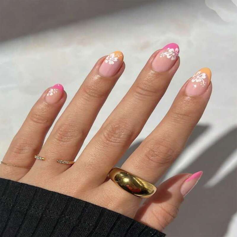 Get Glamorous With 24pcs Long Almond Flower Pattern Full Cover Fake Nail Kit