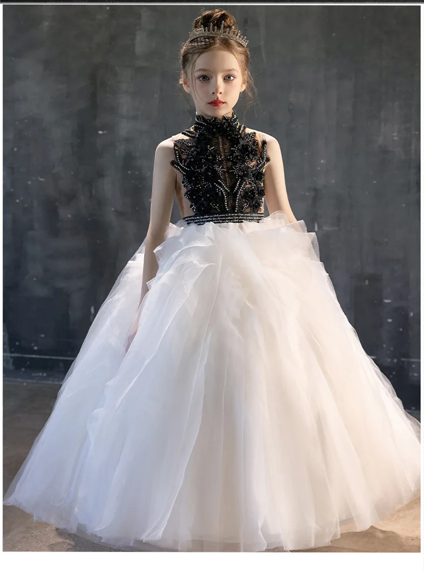 Girls Halter Neck Black and White Contrast Fashion Gorgeous Teen Dress Girls Dress Concert Small Concert Dress/Custom