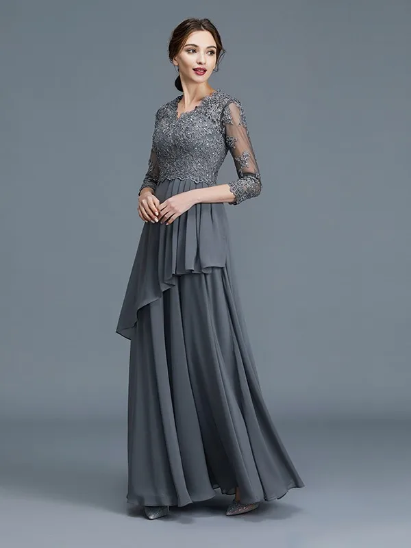 Gray Mother Of The Bride Dresses A-line 3/4 Sleeves Appliques Beaded Plus Size Long Groom Mother Dresses For Wedding Customized