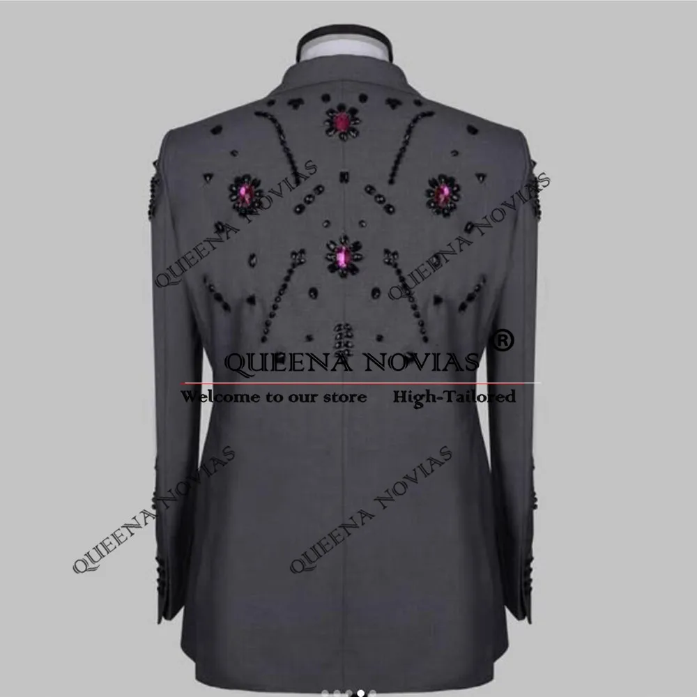 Grey Designer Groom Wedding Suits Metallic Jewelry Stones Prom Blazer Outfits Customized 2 Pieces Man Banquet Party Men Tuxedos