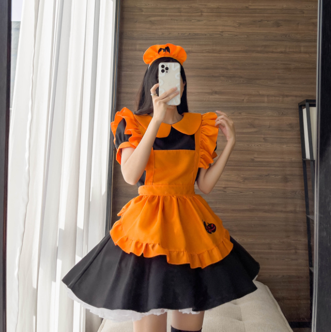 [Halloween Sale]Halloween Embroidered Maid Costume Pumpkin Maid Costume