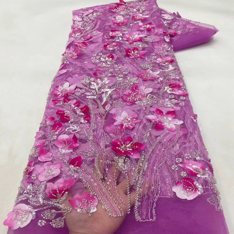 Item: Handmade African Beaded Lace Fabric 2022 Luxury Nigerian Lace Embroidery French Sequins Lace TS1751
