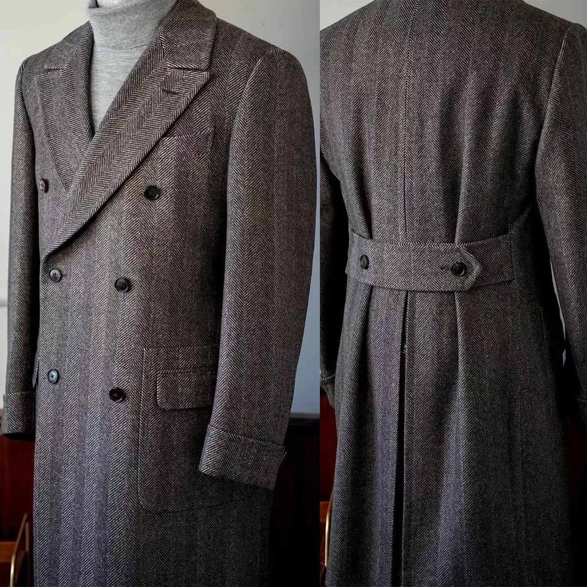 Herringbone Men Woolen Overcoat Double Breasted Winter Thick Coat Big Lapel Plus Size Customized Formal Casual Outwear Blazer