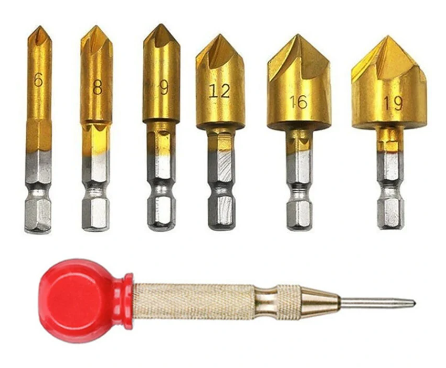 Hex Shank 5-blade Chamfer Countersunk Drill Bits Chamfering Knife Countersink Wood Plastics PVC Woodworking Hole Saw Kit Tool