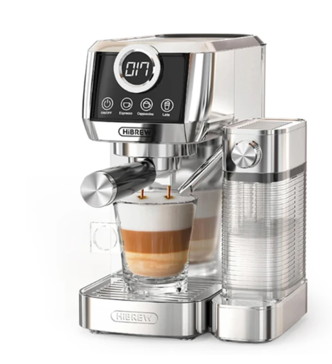 HiBREW H13A 3 in 1 Semi Automatic Coffee Machine, 6 Coffee Modes, 20Bar Extraction Pressure, 1.3L Removable Water Tank, 51mm Aluminum Alloy Handle, Du