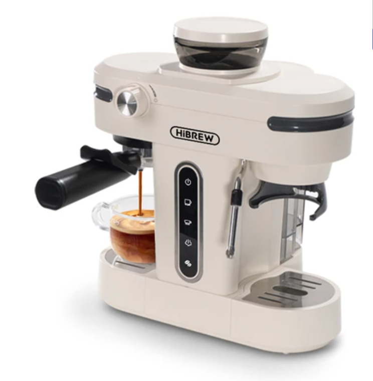 HiBREW H14 Espresso Coffee Machine, 20 Bar High Pressure, 15-gear Grinder Setting, Pre-brew Function, NTC Temperature Control, Cup Capacity Setting –