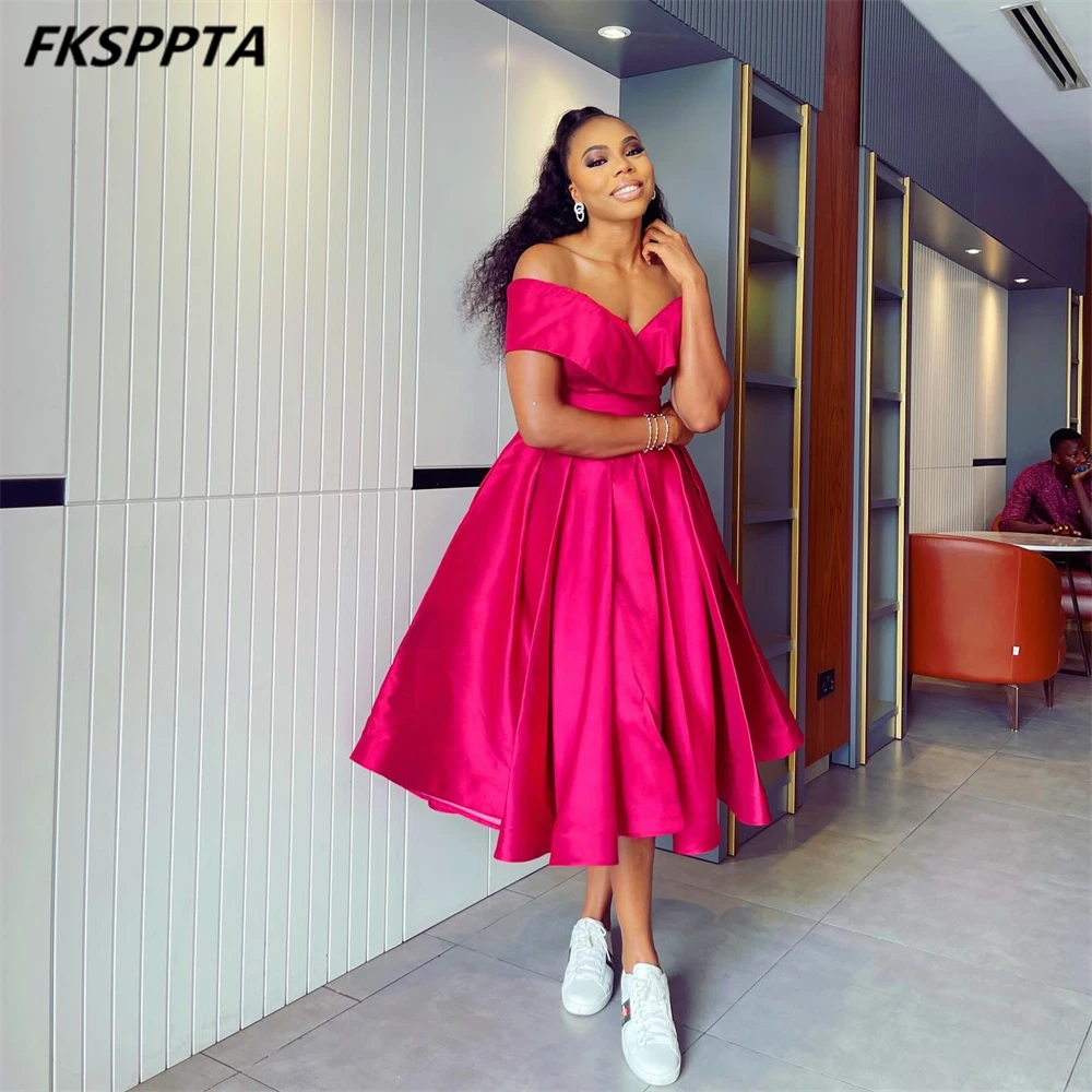 High Quality 2024 Bridesmaid Dresses Off The Shoulder A Line Fuchsia Satin Maids Of Honor Gowns For Wedding Party Custom Made