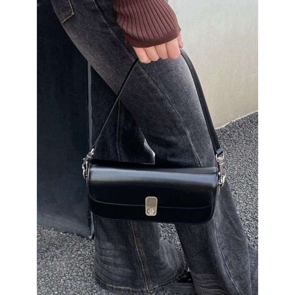 High quality single shoulder crossbody bag for women 2025 new item underarm handheld autumn and winter soft leather black baguette design