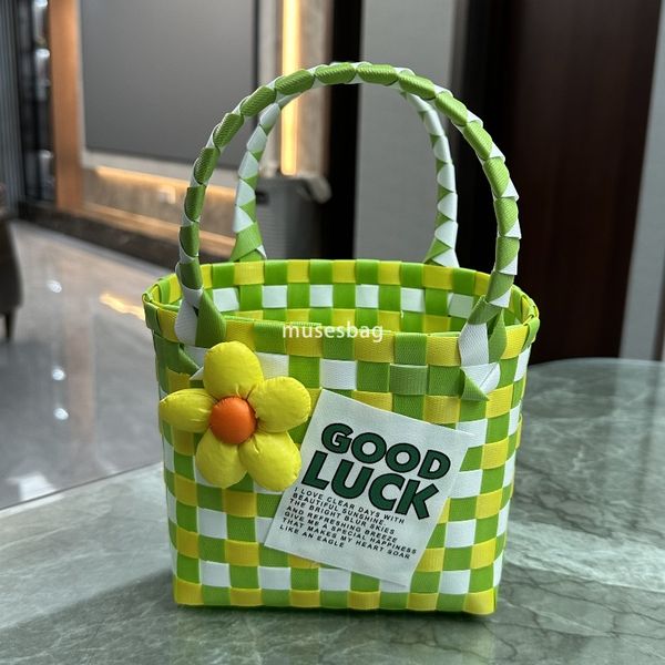 High Quality Women's Designer Large Capacity Woven Basket Storage Basket Handheld Basket with Hand Gift Full Moon Return Gift Bag Small Square Bag Beach Bag