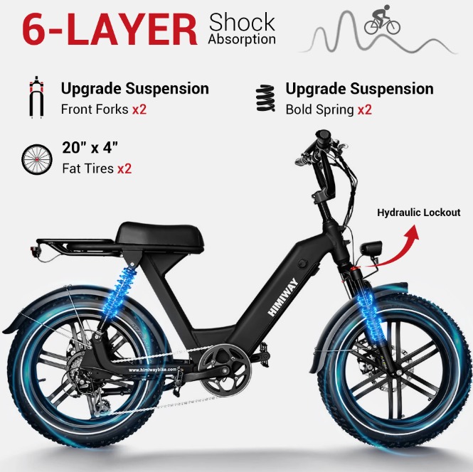 Description: HIMIWAY Mountain Electric Bike – Unleash Your Adventure Experience the Thrill of the Trail with the HIMIWAY Mountain Electric Bike The HIMIWAY Mountain Electric Bike is meticulously engineered for riders seeking exhilarating exploration and confident navigation on diverse terrains. Designed for both seasoned cyclists and newcomers alike, this 700W ebike seamlessly blends performance, durability, and comfort, transforming your daily commutes and weekend adventures into unforgettable experiences. Engineered for Performance and Reliability: At the heart of the HIMIWAY lies a powerful 700W motor, providing the momentum you need to conquer hills and maintain a steady pace. This robust motor delivers smooth, responsive acceleration, making tackling challenging climbs and reaching higher speeds a breeze. The motor’s intelligent control system ensures optimal power delivery, providing a responsive and confident ride feel. The bike boasts a meticulously crafted drivetrain, featuring a reliable Shimano drivetrain – offering seamless shifting and exceptional durability. We’ve prioritized ease of maintenance, allowing you to keep your bike running smoothly for years to come. Ride with Confidence – Advanced Suspension & Comfort: The HIMIWAY’s 17.5AH E Bike provides ample power, and the addition of a 48V 17.5Ah battery packs contributes to enhanced stability and confidence, especially on uneven surfaces. Crucially, the integrated dual shock absorber system provides exceptional cushioning and a plush ride, absorbing bumps and imperfections in the road, making every journey enjoyable. This system actively manages wheel vibrations, leading to a smoother, more stable ride. Designed for Versatility – Conquer Any Terrain: The 20-inch fat tire frame is meticulously crafted to withstand the rigors of off-road riding. Its wider profile and aggressive tread pattern provide superior traction and control on loose surfaces, mud, and gravel. The sturdy construction ensures a long lifespan, delivering years of dependable performance. Key Features & Benefits: Powerful 700W Motor: Provides ample power for effortless climbing and speed. Durable 17.5Ah Battery Pack: Ensures extended range and a comfortable ride. Advanced Dual Shock Absorber System: Offers superior cushioning and stability, particularly on rough terrain. 20-Inch Fat Tire Design: Exceptional traction and control on diverse surfaces. Shimano 21-Speed Derailleur: Seamless shifting for effortless control. Ergonomic Frame & Seat: Designed for comfort during extended riding. Robust Alloy Frame: Built to withstand the demands of outdoor riding. Bright LED Front & Rear Lights: Enhanced visibility for safe riding. Integrated Reflectors: Increased safety while riding in low-light conditions. Lightweight & Foldable Design: Easy to transport and store. Ideal For: Serious Commuters: A convenient and efficient way to navigate your daily route. Outdoor Explorers: Perfect for trails, gravel paths, and exploring nature. Weekend Adventurers: Take your adventures to the next level with this reliable ebike. Experienced Riders: The 700W motor and advanced suspension system elevate the riding experience. Invest in your passion for cycling. Invest in the HIMIWAY Mountain Electric Bike – where performance meets adventure. [Include a call to action – e.g., “Order Yours Today!”]