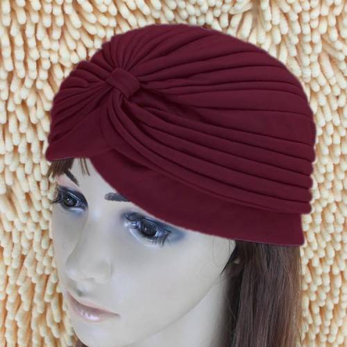 Holiday Stretchy Turban Head Wrap Band Sleep Hat Ear Cap(Wine red)