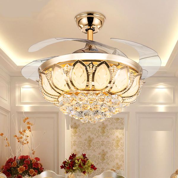 Hot LED Ceiling Invisible Fan Lights Timing Remote Control Warm White Light Pendant Lamp Remote Control Crystal
