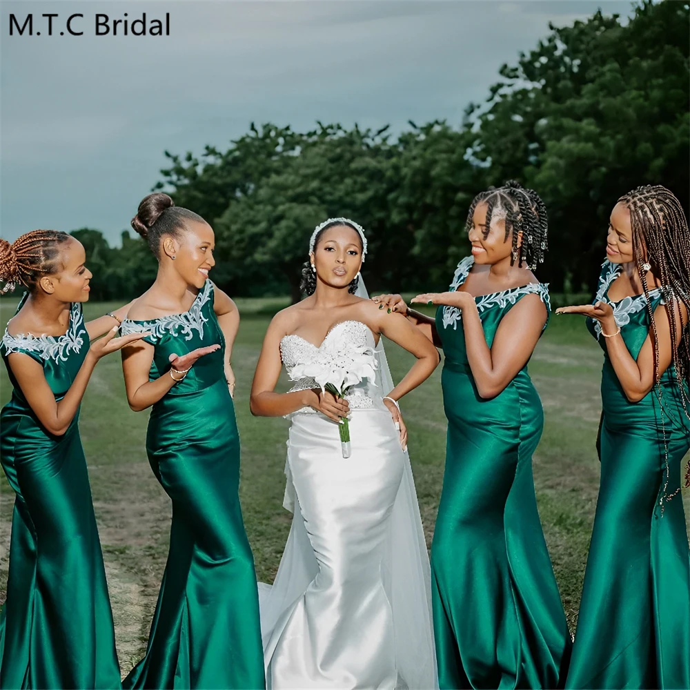 Hot Selling 2025 Green Mermaid Long African Bridesmaid Dress Whith Appliques Floor Length Satin High Quality Wedding Party Gowns